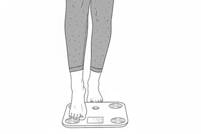 - Stoupněte si na váhu naboso. Chodidla musí být čistá a suchá pro zajištění vodivosti.